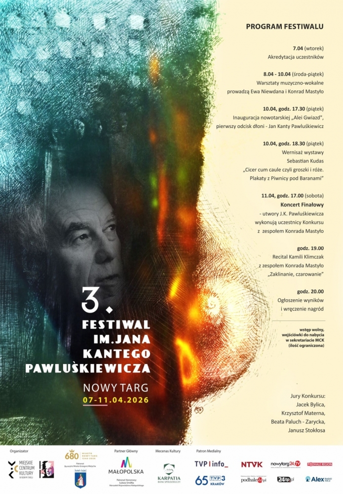 Nowy Targ przygotowuje się do 3. Festiwalu im. Jana Kantego Pawluśkiewicza. Organizatorzy przedstawili szczegółowy program wydarzeń, w tym koncert finałowy i recital zaproszonej artystki.